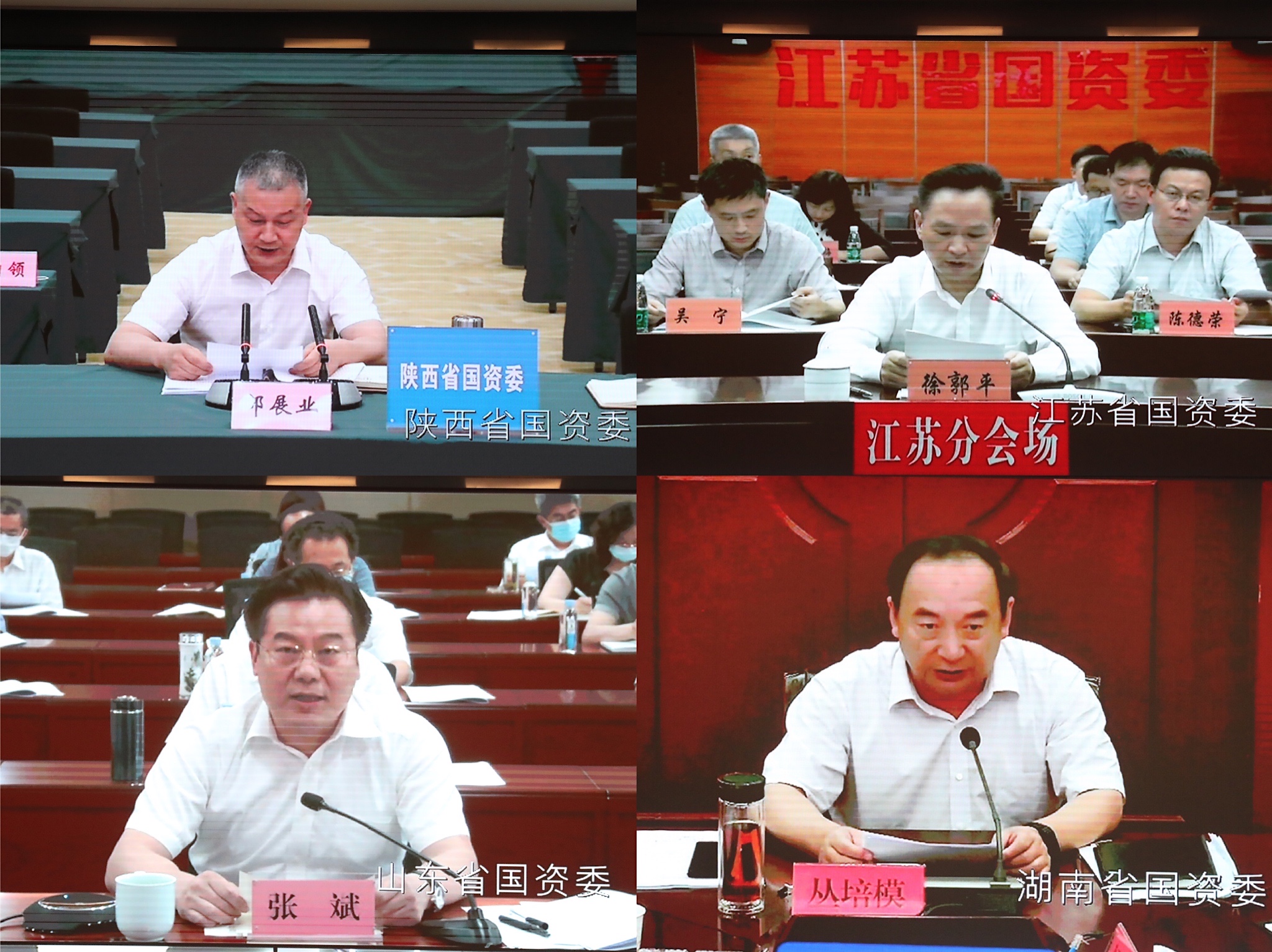 會(huì )上,陜西、江蘇、山東、湖南等4省國資委主要負責同志通過(guò)視頻會(huì )議系統作了交流發(fā)言。國務(wù)院國資委總會(huì )計師、副秘書(shū)長(cháng),駐委紀檢監察組,各廳局、直屬事業(yè)單位負責同志在主會(huì )場(chǎng),各省、自治區、直轄市及計劃單列市和新疆生產(chǎn)建設兵團國資委負責同志在當地分會(huì )場(chǎng)參加會(huì )議。