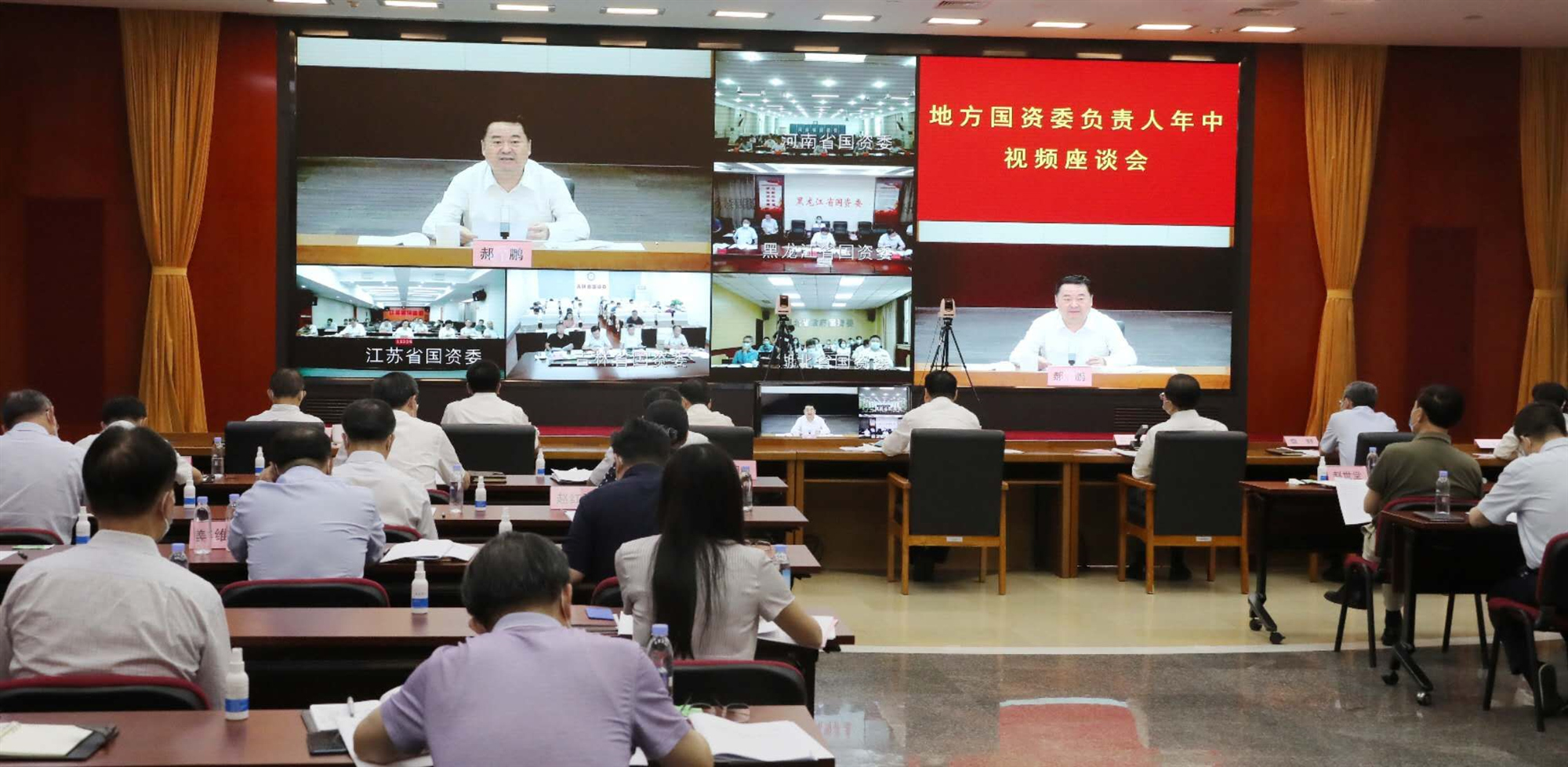| 7月22日,國務(wù)院國資委召開(kāi)地方國資委負責人年中視頻座談會(huì ),總結2020年上半年工作,交流經(jīng)驗做法,研究推動(dòng)下半年重點(diǎn)任務(wù)。國務(wù)院國資委黨委書(shū)記、主任郝鵬主持會(huì )議并講話(huà)強調,要深入學(xué)習貫徹習近平總書(shū)記關(guān)于統籌推進(jìn)疫情防控和經(jīng)濟社會(huì )發(fā)展的系列重要講話(huà)和重要指示精神,堅決貫徹落實(shí)黨中央、國務(wù)院決策部署,圍繞落實(shí)“六穩”“六保”要求,繼續落實(shí)好今年年初地方國資委負責人會(huì )議工作安排,在各地黨委、政府領(lǐng)導下,更加聚焦推動(dòng)國資系統監管企業(yè)總體效益實(shí)現穩增長(cháng),更加聚焦抓好國企改革三年行動(dòng)方案落實(shí)落地,激發(fā)國有企業(yè)市場(chǎng)主體活力,弘揚企業(yè)家精神,加快推動(dòng)高質(zhì)量發(fā)展,不斷增強國有經(jīng)濟競爭力、創(chuàng )新力、控制力、影響力、抗風(fēng)險能力。國務(wù)院國資委黨委委員陳超英、翁杰明、任洪斌、袁野、彭華崗出席會(huì )議。