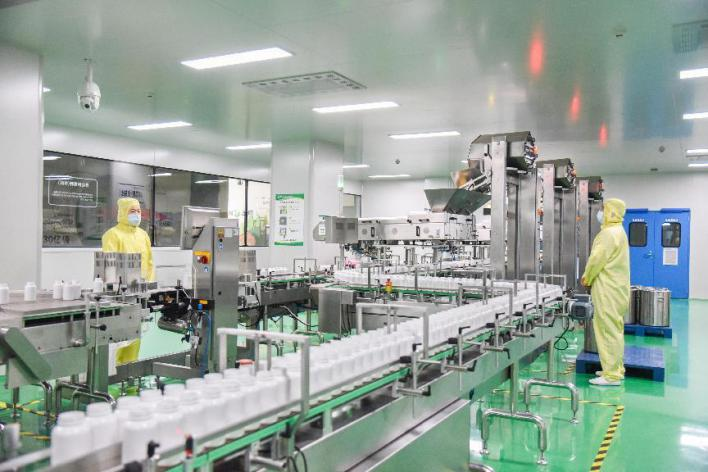 據了解,園區的照明、制冷,生產(chǎn)用電、用水等優(yōu)先依靠自建的2.3兆瓦屋頂光伏電站。每年園區自發(fā)電量為315萬(wàn)度,可減少煤炭消耗2003噸,相當于減少二氧化碳排放5248噸。2024年,園區的二氧化碳排放強度為0.03噸二氧化碳當量/萬(wàn)元,遠低于全球平均水平。 在降低能耗上下狠功夫的同時(shí),園區在推動(dòng)資源循環(huán)利用上頻出實(shí)招,一方面委托具備資質(zhì)的物資回收公司將生產(chǎn)過(guò)程原輔料包裝材料全部回收,使工業(yè)固體廢物綜合利用率達到100%,另一方面將生產(chǎn)過(guò)程中產(chǎn)生的廢水收集到廠(chǎng)區污水站深度處理后,用于灌溉園區的花草樹(shù)木,讓資源在循環(huán)利用中發(fā)揮最大效益。 當前,園區已經(jīng)全面通過(guò)ISO9001、ISO14001、ISO22000、ISO45001、ISO50001國際體系認證,在食品安全、產(chǎn)品質(zhì)量、環(huán)境保護等領(lǐng)域均達到國內領(lǐng)先水平。 GMP車(chē)間里藏著(zhù)“綠色密碼” 洗手、消毒、換衣、除塵……每一位進(jìn)入園區生產(chǎn)車(chē)間的人員都要經(jīng)過(guò)這一系列繁瑣的程序。反光的地面、不著(zhù)一絲污跡的角落、自動(dòng)化運轉的精密儀器、燈火通明的車(chē)間,這里看上去更像是一間偌大的、枕戈待旦的手術(shù)室。