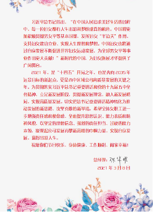3月8日,風(fēng)電西中區域公司黨總支部、工會(huì )聯(lián)合舉辦“巾幗心向黨?百年正芳華”主題黨日活動(dòng),在第111個(gè)國際三八婦女節向公司全體巾幗致以節日的問(wèn)候和美好的祝愿。 結合疫情防控實(shí)際,西中區域公司黨總支部書(shū)記張華耀向全體女職工送上節日祝福,并表示,2020年是西中區域公司任務(wù)艱巨且極不平凡的一年?;厥坠窘M建成立以來(lái)走過(guò)的路程,公司全體女職工踐行黨員的使命與擔當,在各自的工作崗位上兢兢業(yè)業(yè)、無(wú)私奉獻,以強烈的主人翁意識,將個(gè)人利益和公司的發(fā)展緊密結合,在平凡的崗位上做出了不平凡的業(yè)績(jì),為公司的建設發(fā)展做出了積極貢獻。在慶祝新中國成立70周年系列活動(dòng)、“搶工期、保電價(jià)”“提質(zhì)增效”等重點(diǎn)任務(wù)上,西中區域公司全體女職工工作既出色、又出彩;在日常工作中,女職工們用女性特有的耐心、細心,守土有責、守土擔責、守土盡責,彰顯了節能風(fēng)電女職工的風(fēng)采;在生活中,大家揚家風(fēng),孝敬老人、教育子女、經(jīng)營(yíng)家庭,展現崇高的家國情懷;為西中區域公司構筑了一道道絢麗風(fēng)景! 公司領(lǐng)導班子向全體女職工發(fā)放節日慰問(wèn)品,工會(huì )女工委員開(kāi)展了職業(yè)女性保健護膚以及日常儀容儀表的培訓講座,共同帶去節日問(wèn)候和關(guān)懷。公司領(lǐng)導班子期望大家在妥善安排好家庭和工作的同時(shí),盡可能多地擠出時(shí)間學(xué)習,不斷充實(shí)自己,不斷提高修養,時(shí)刻適應時(shí)代發(fā)展和建設學(xué)習型社會(huì )的需要,樹(shù)立終身學(xué)習的理念,努力提高自身素質(zhì),以素質(zhì)樹(shù)地位,以素質(zhì)求平等,以素質(zhì)做貢獻,著(zhù)力打造學(xué)習型、知識型、創(chuàng )新型的新女性,切實(shí)增強自身的能力。并強調:“‘巾幗不讓須眉’,在公司領(lǐng)先發(fā)展的路上,廣大女職工大有可為,大有作為?!?/p> 2021年是西中區域公司的發(fā)展之年、生機之年,更是努力奮斗的一年。公司領(lǐng)導班子真摯的問(wèn)候和祝福使公司全體女職工倍感溫暖和鼓舞,大家紛紛表示要更加努力工作,與西中區域公司同舟共濟,揚帆奮進(jìn),讓自己的人生出彩、夢(mèng)想成真,為公司再添光彩,譜寫(xiě)節能風(fēng)電人光榮與夢(mèng)想的新篇章。