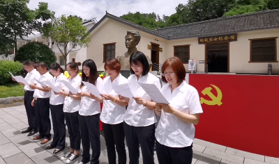 在胡敵烈士紀念館,廣大黨員向胡敵烈士紀念雕像敬獻鮮花、鞠躬致意,面向黨旗莊嚴宣誓,再次重溫了入黨歷程,不改初心使命。黨員們認真聆聽(tīng)了作為宜昌市歷史上第一位中共黨員、宜都縣第一任黨支部書(shū)記胡敵烈士的英勇事跡,學(xué)習了他胸懷救國之志,舍家投身革命的偉大精神。 “男兒有志在四方,為國為民奔波忙,待到他日天地轉,朝夕歡聚在一堂”在場(chǎng)黨員重溫了胡敵烈士生前寫(xiě)給妻子的詩(shī)信,感受胡敵烈士偉大的家國情懷。在紀念廣場(chǎng)中央,黨員代表一字排開(kāi),深情朗誦了由支部黨員親自編寫(xiě)的紅色詩(shī)歌《緬懷宜昌第一位共產(chǎn)黨員:胡敵烈士》,表達了對胡敵烈士的崇敬之情,接受了一次心靈的洗禮。