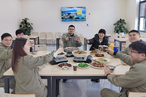 有一種年味兒是闔家團圓,還有一種年味兒叫默默堅守。今年是牛莊風(fēng)電場(chǎng)運維一班在春節期間連續值班的第三個(gè)年頭。一大早,在完成預定的工作任務(wù)后,風(fēng)電場(chǎng)值守員工齊上陣,貼對聯(lián)、掛燈籠,圍坐在一桌子豐盛的團圓飯前,舉杯慶祝,嘮嘮家常,好不愜意。 這是中國節能風(fēng)電人春節假期工作生活中的一段段縮影,有在春節保供崗位的默默付出,也有戰友一樣互相支持的情誼,更有員工年夜團聚的溫情時(shí)刻。號令一響、全員齊動(dòng),越是在關(guān)鍵時(shí)刻,節能風(fēng)電人越是肩抗責任,逆行而上,為春節保供工作貢獻應有的力量。