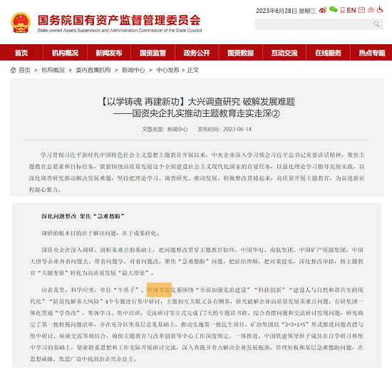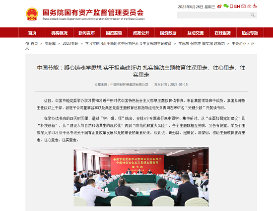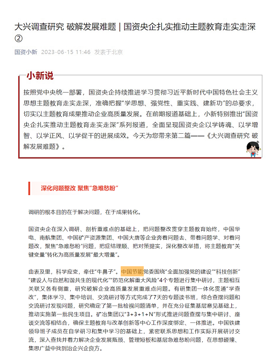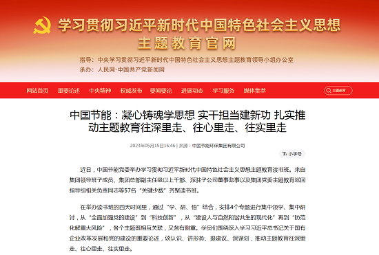 中國節能主題教育特色亮點(diǎn)獲主題教育領(lǐng)導小組、國資委等多方報道 |