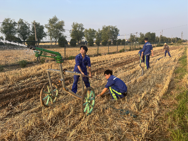 河南省高溫預警、干旱橙色預警、農業(yè)高溫干旱高風(fēng)險預警集體發(fā)出,旱災仍在持續。所屬風(fēng)電河南區域公司幫助屬地村民打好抗旱保苗戰,盡最大努力挽救干旱狀態(tài)下的夏種農作物,所屬子夏風(fēng)電場(chǎng)、順城風(fēng)電場(chǎng)積極調動(dòng)場(chǎng)站內一切可利用的水資源和澆灌設施,廣泛動(dòng)員運維人員積極參與到河南省尉氏縣永興鎮段莊村和溫縣黃莊鎮林村抗旱保苗工作中,冒著(zhù)高溫酷暑,協(xié)助當地村民采用引澆、滴灌等方式對農田里的玉米、紅薯等夏種農作物進(jìn)行澆灌,為農作物送水“解渴”,同時(shí)正確引導當地村民做到高效節水,合理用水,引導,確保每一滴水都能發(fā)揮最大效用。同時(shí),各風(fēng)電場(chǎng)堅持“一場(chǎng)一策”,“量身定制”夏季保供工作方案和應急預案,落實(shí)“日查+夜巡”全時(shí)段、“特巡+定巡”全覆蓋的雙巡機制,重點(diǎn)對高溫狀態(tài)下的風(fēng)機設備、重要輸變電設備和集電線(xiàn)路等重點(diǎn)設備進(jìn)行了全面排查,精細調控、及時(shí)消缺、錯峰檢修,積極預控風(fēng)險,以供電設備的安全平穩運行助力緩解河南部分地區用電短缺的嚴峻形勢。