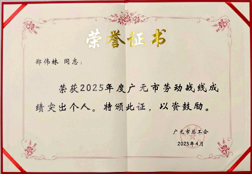 “五一”國際勞動(dòng)節前夕,四川省廣元市慶祝中華全國總工會(huì )成立100周年暨廣元市2025年“五一”國際勞動(dòng)節主題活動(dòng)在廣元經(jīng)濟技術(shù)開(kāi)發(fā)區鋁錠貿易中心舉行。中節能風(fēng)電四川公司云頂山風(fēng)場(chǎng)鄭偉林榮獲“廣元市勞動(dòng)戰線(xiàn)成績(jì)突出個(gè)人”榮譽(yù)稱(chēng)號,以此褒獎這位扎根秦巴山區8年的“追風(fēng)者”。