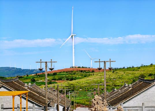 (河南省洛陽(yáng)市嵩縣節能小鎮) 在嵩縣連綿起伏的山脈上,挺拔搖曳的風(fēng)機與藍天遠山交相輝映,云海肆意翻騰,構成“湖山圣域”一道亮麗的“風(fēng)”景線(xiàn)。風(fēng)機憑借“體型”優(yōu)勢和超高“顏值”,創(chuàng )新將“湖山圣域、嵩縣愛(ài)你”等當地文旅形象標語(yǔ)彩繪于風(fēng)機塔筒之上,把風(fēng)機變成文旅宣推載體,“繪”出鄉村振興獨特“風(fēng)”景線(xiàn),同時(shí)與已建成的“節能小鎮”“石頭部落”等一道融入文旅產(chǎn)業(yè),打造出一條集風(fēng)車(chē)觀(guān)光、果園采摘、民俗體驗等為一體的鄉村旅游路線(xiàn)。嵩縣從一個(gè)貧窮落后的貧困山區逐步發(fā)展為美麗鄉村、國家3A級景區,入選河南首批自駕旅游寶藏縣域名單。